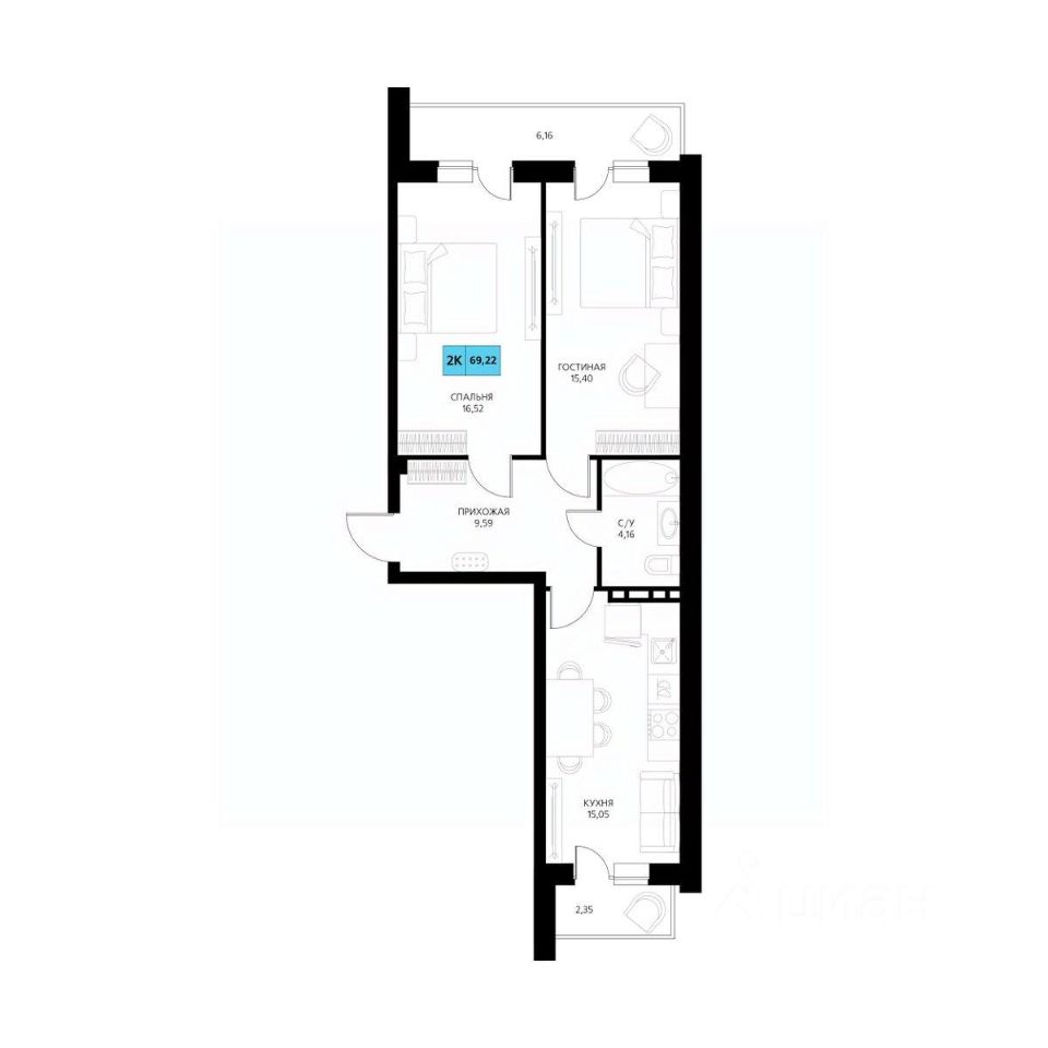 Общая площадь69,22 м²