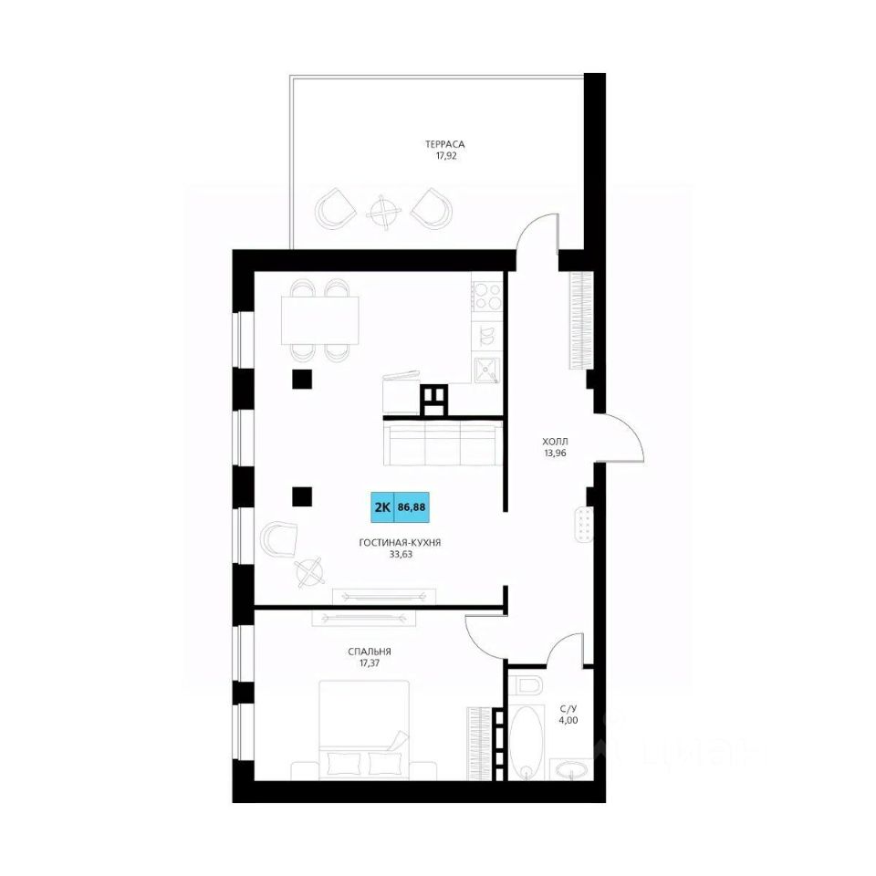 Общая площадь86,88 м²