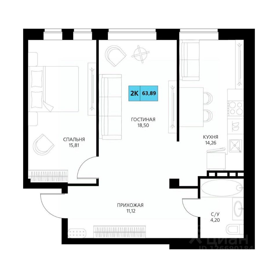 Общая площадь63,89 м²