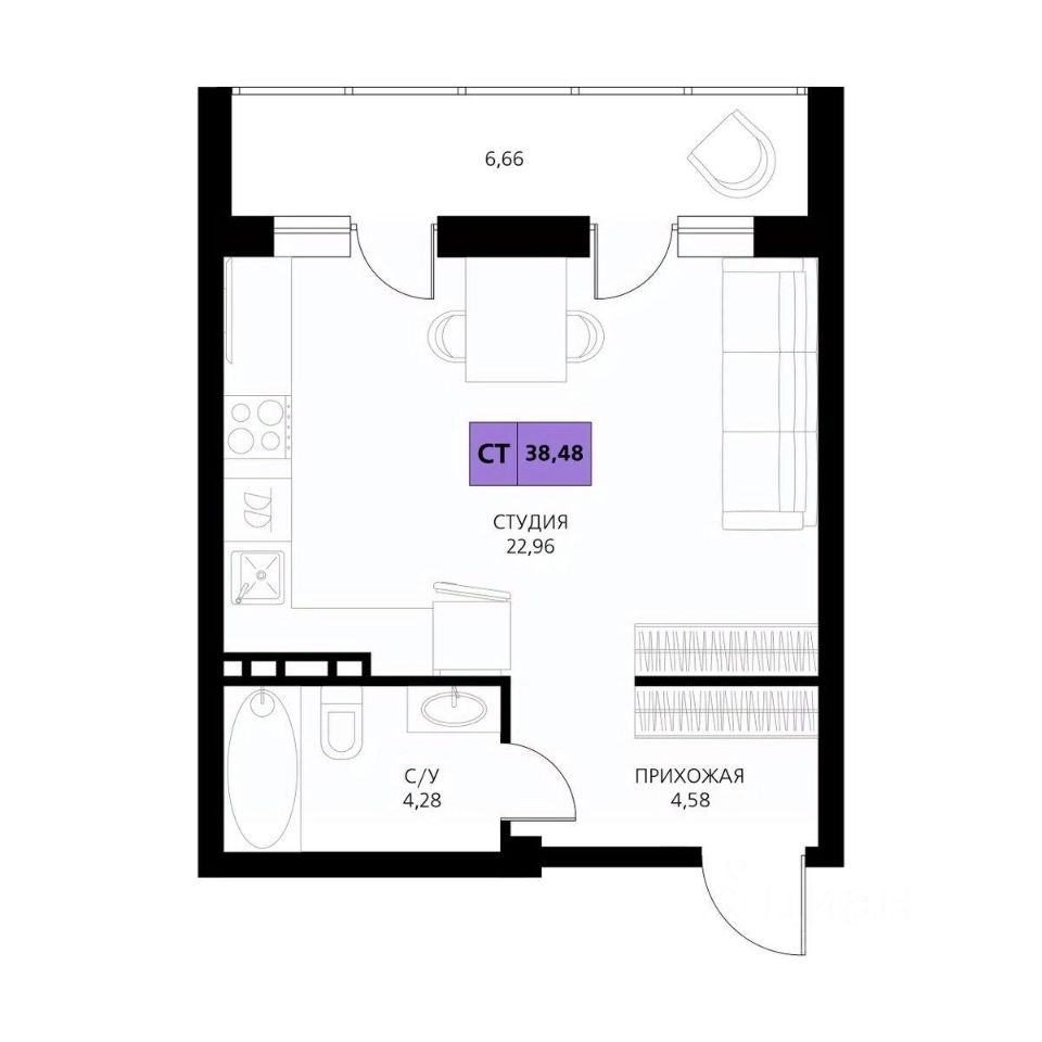 Продается студия, 38,48 м²