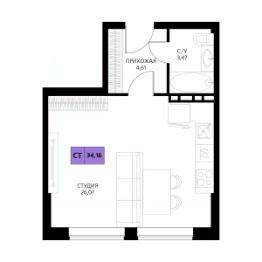 Продается студия, 34,16 м²