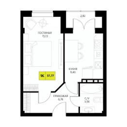 Общая площадь37,77 м²