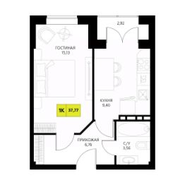 Общая площадь37,77 м²