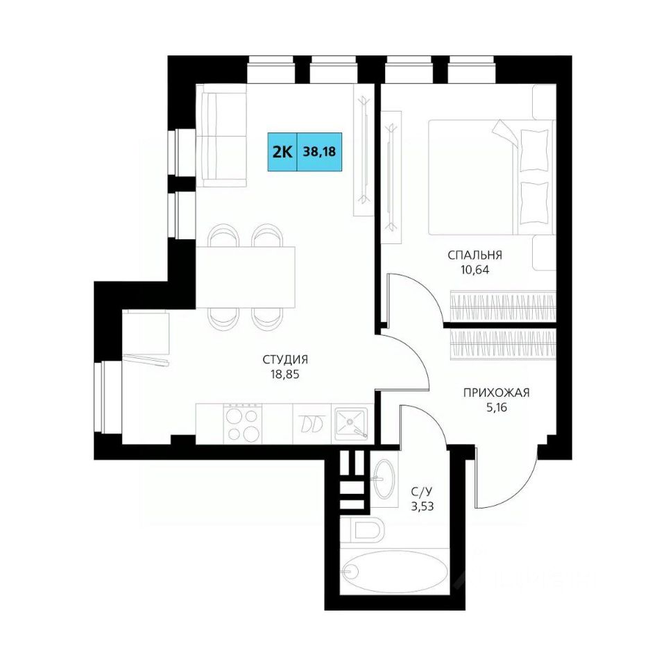 Общая площадь38,18 м²