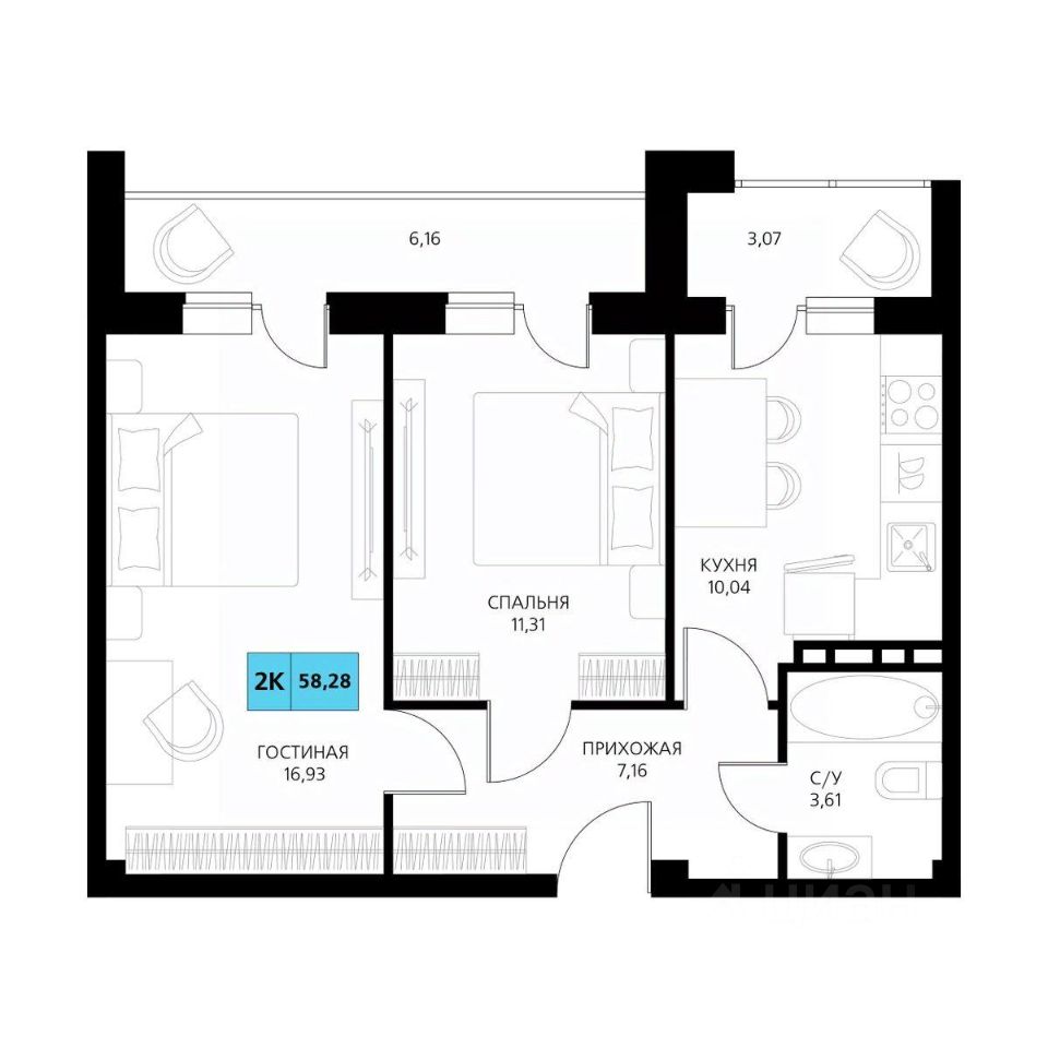 Общая площадь57,84 м²