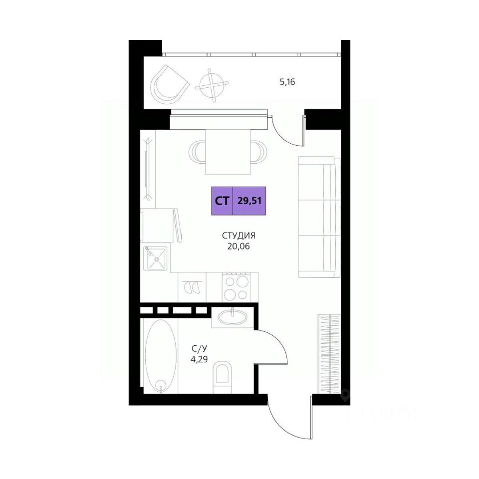 Продается студия, 29,51 м²