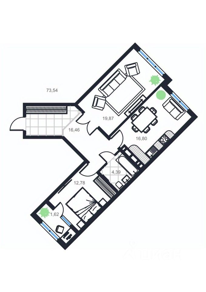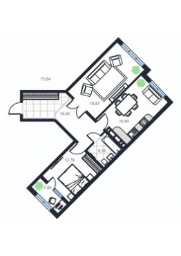 Продаётся 2-комнатная квартира в строящемся доме (Дом 1), срок сдачи: III-кв. 2026, общей площадью 73.54 кв.м., на 3 этаже.