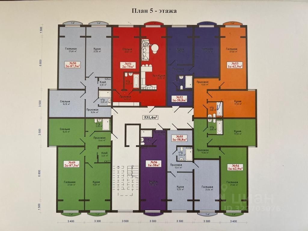 54 м²