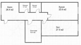 Площадь — 100,8 м², потолки в самой низкой точке 2.8 м. Часть квартиры потолки залитые бетоном.