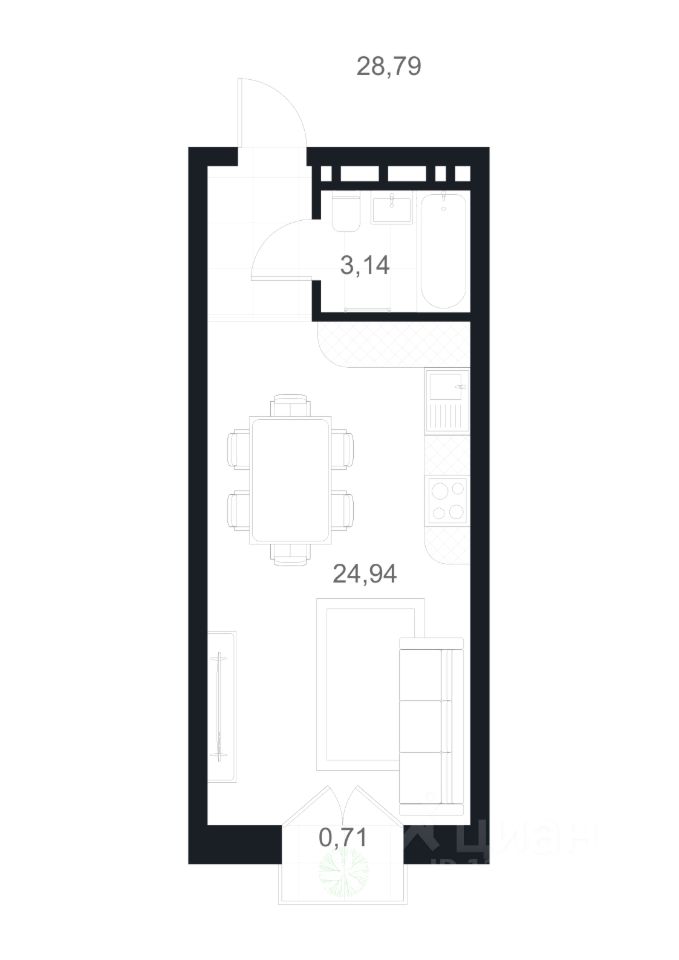 28,79 м²