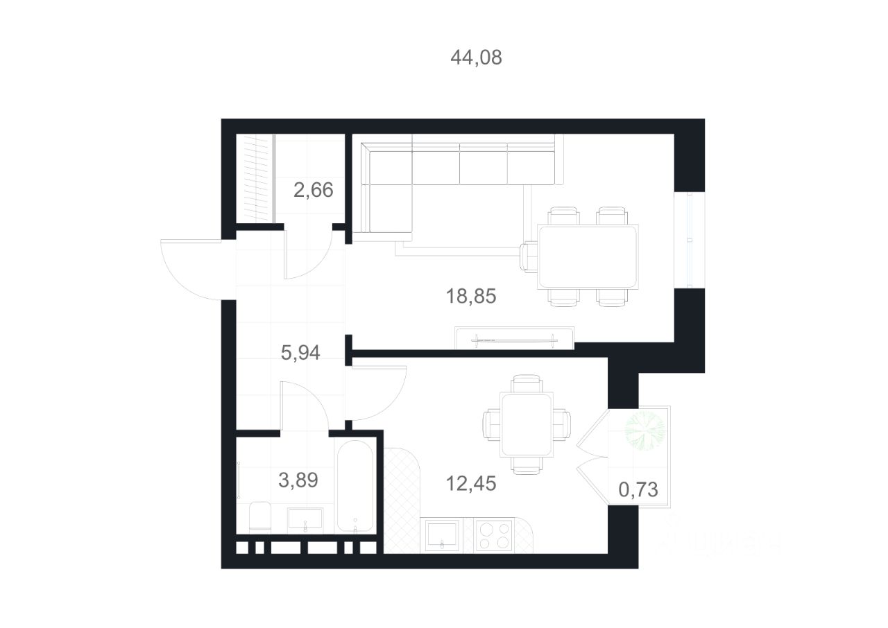 44,08 м²