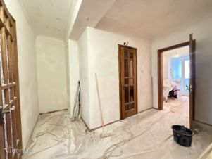 -в квартире практически завершен ремонт ,осталось поклеить обои ,покрасить потолки и доделать пол на лоджии