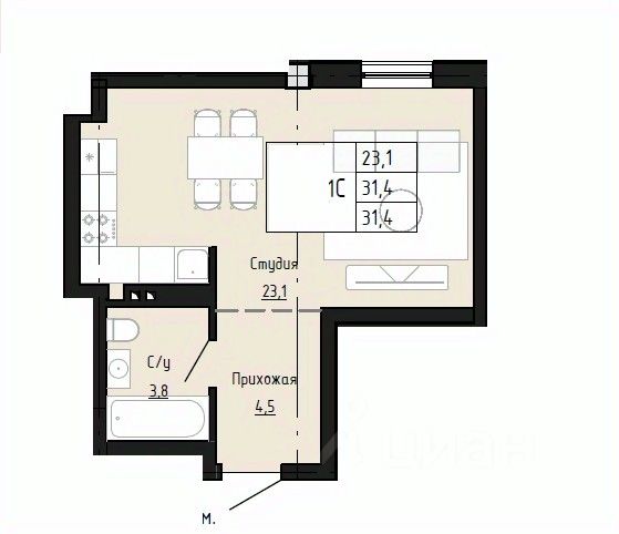 31,4 м²