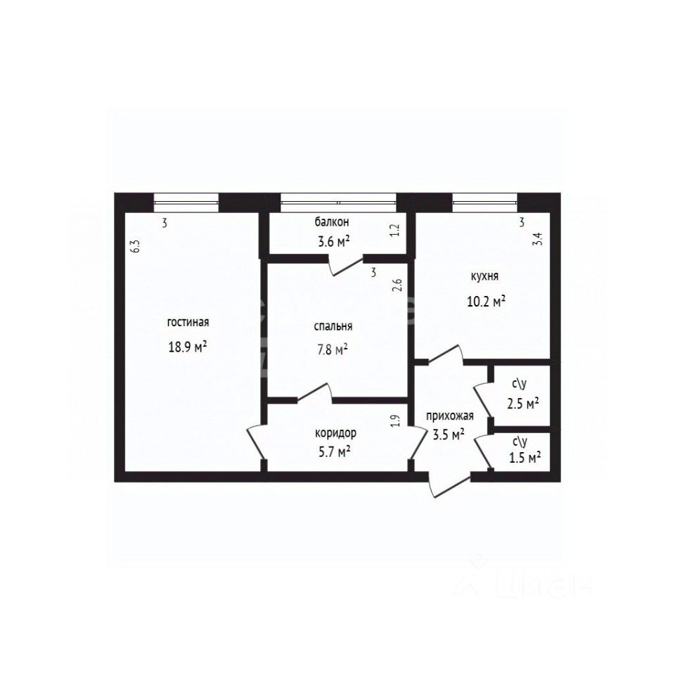 52,6 м²