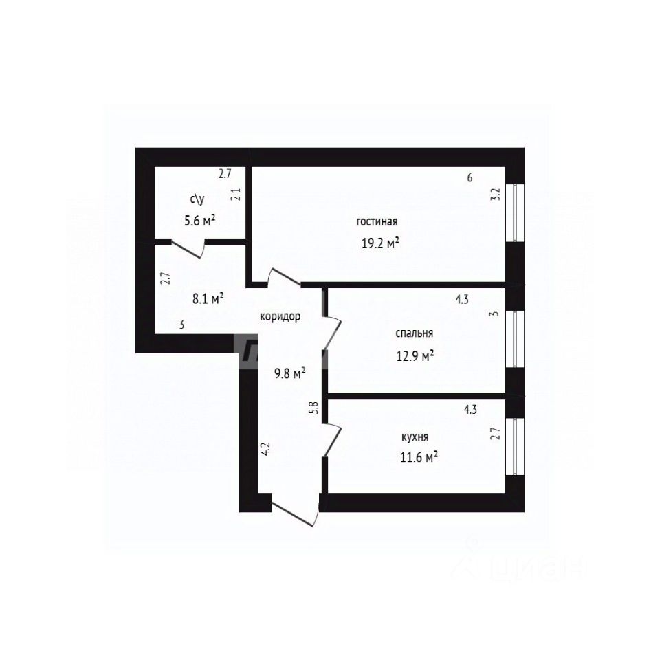 11,6 м²