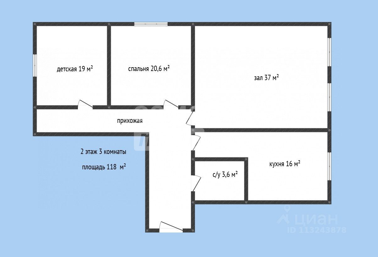 Площадь 118 м² - 3 комнаты.