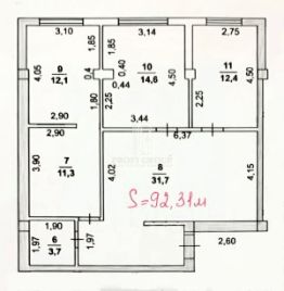 • Площадь: 92,31 м².