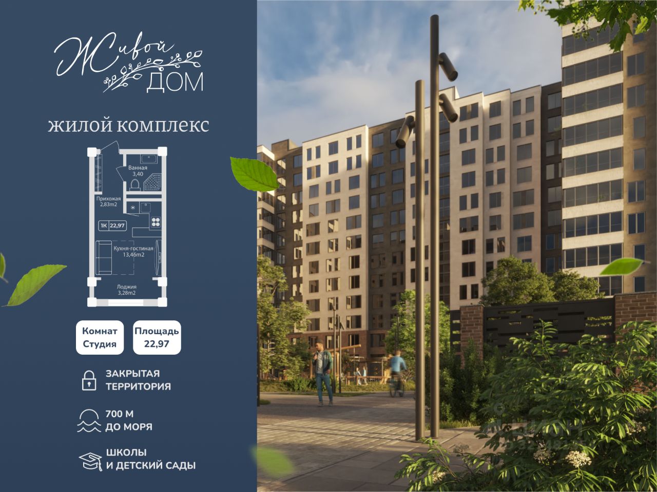 Общая площадь22,97 м²