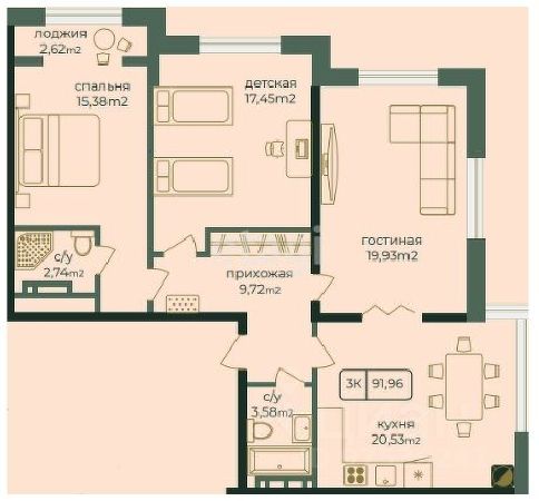 Общая площадь91,96 м²