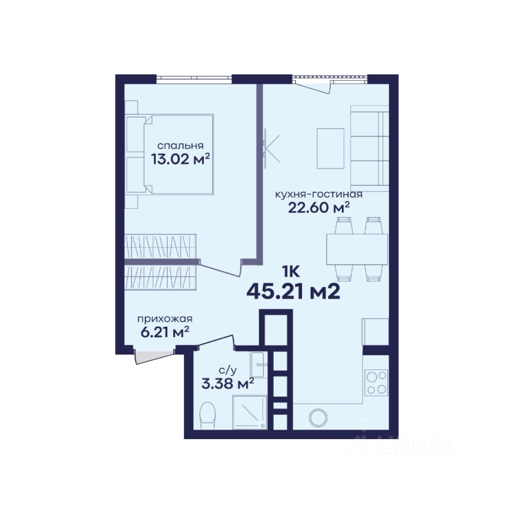 Общая площадь45,21 м²