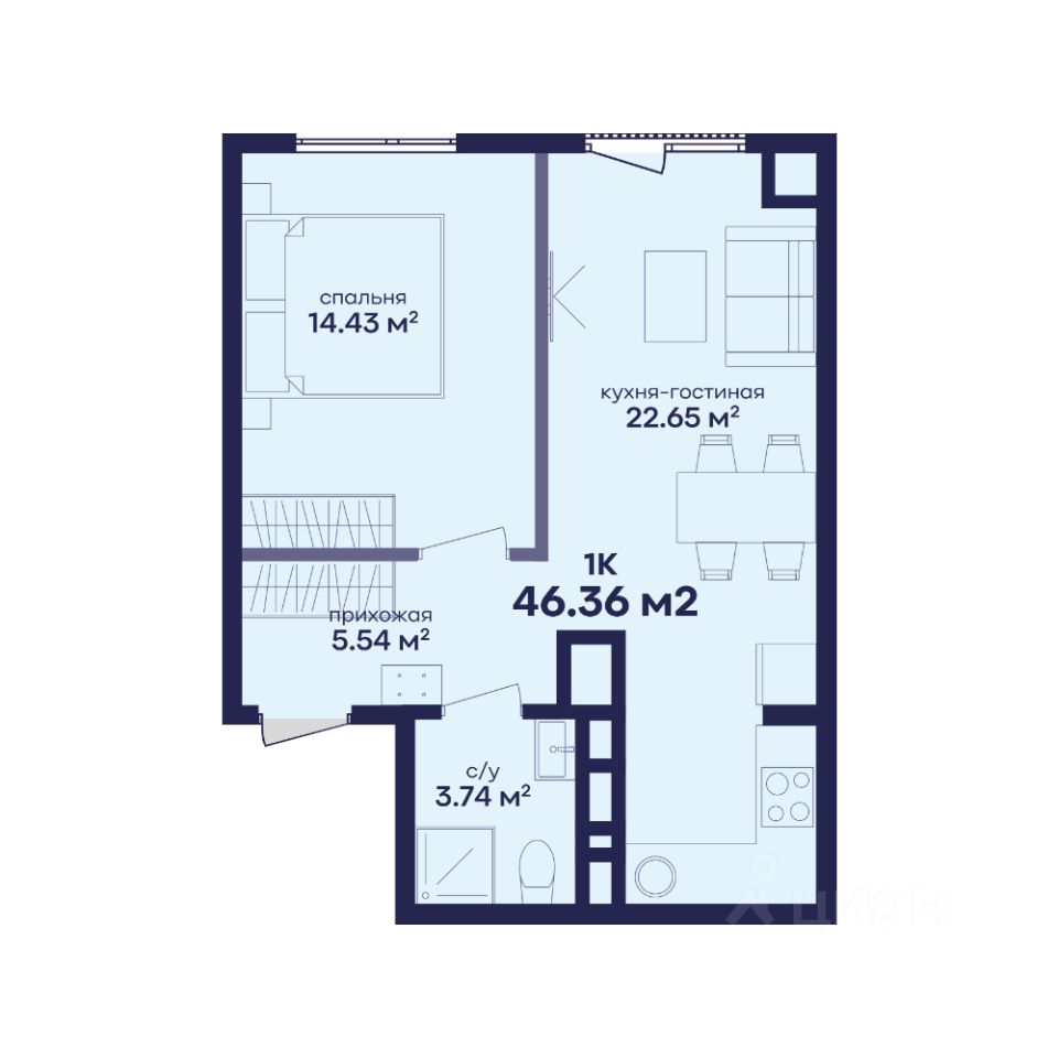 Общая площадь46,36 м²
