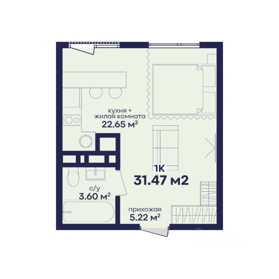 Общая площадь31,47 м²