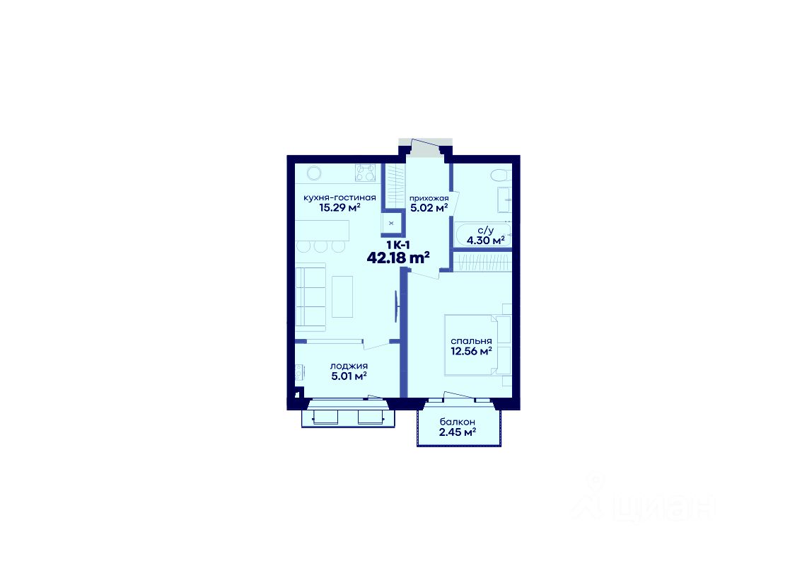 Общая площадь42,18 м²