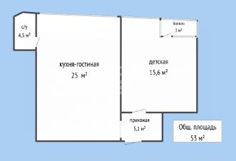 Общая площадь — 53 м²