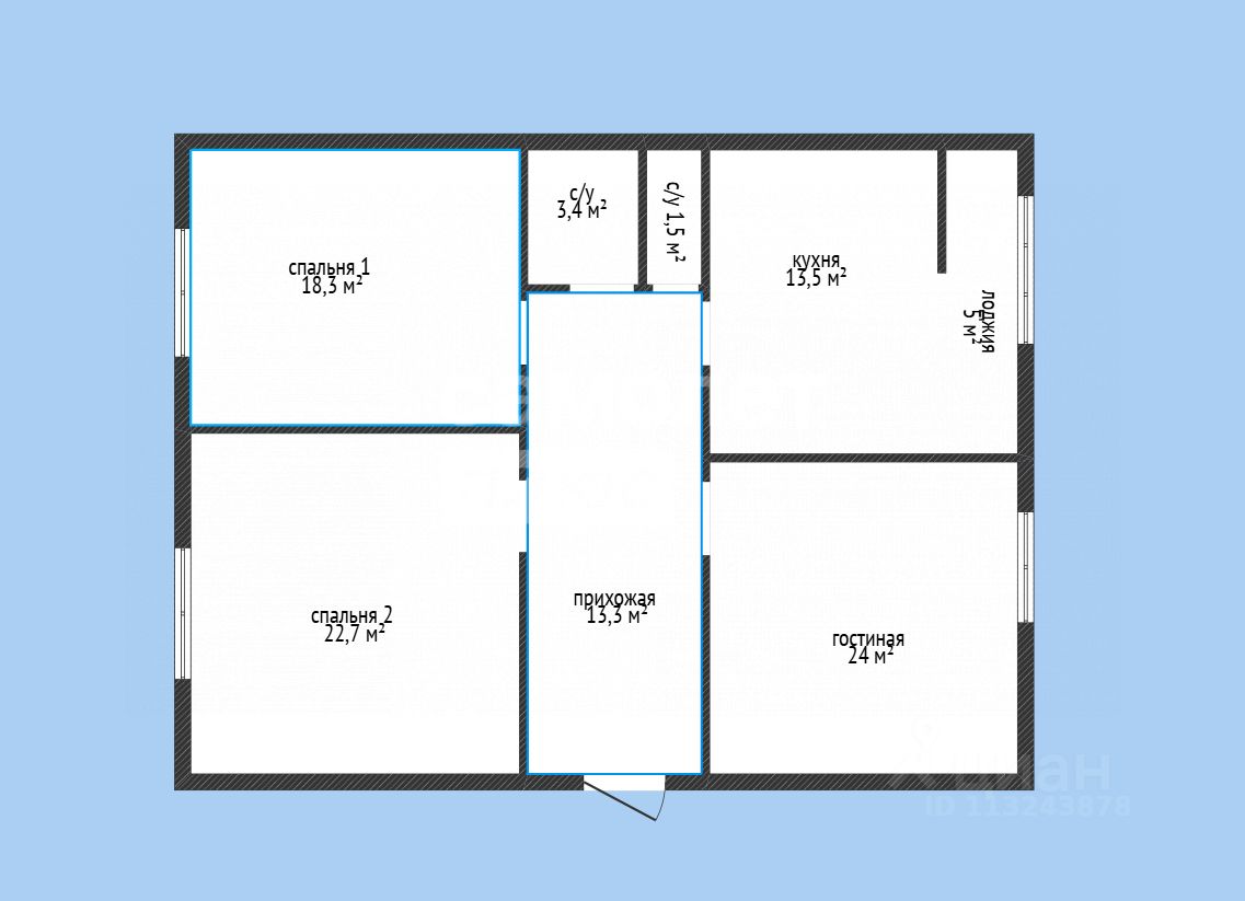 Просторная 3-х комнатная квартира в каркасном состоянии