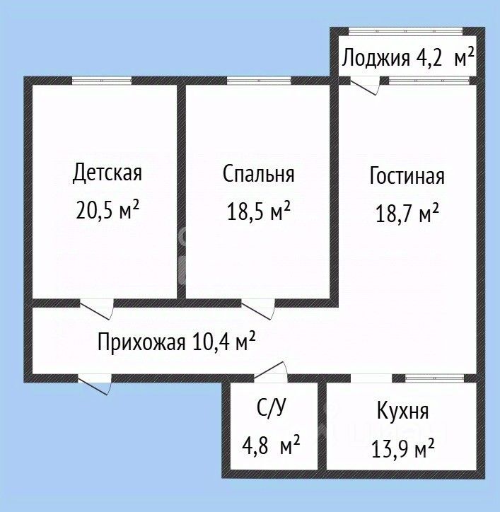 Общая площадь - 91 м²