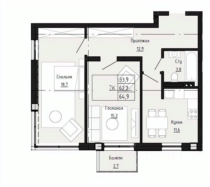 64,9 м²