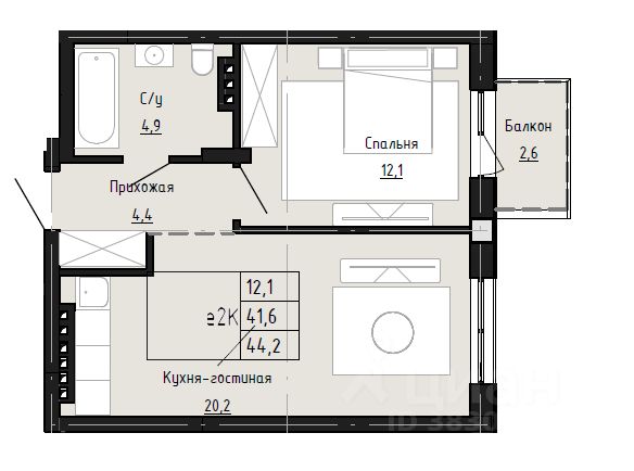 44,2 м²