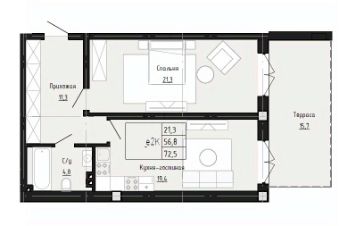 72,5 м²