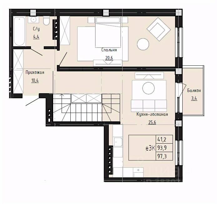 Общая площадь97,3 м²