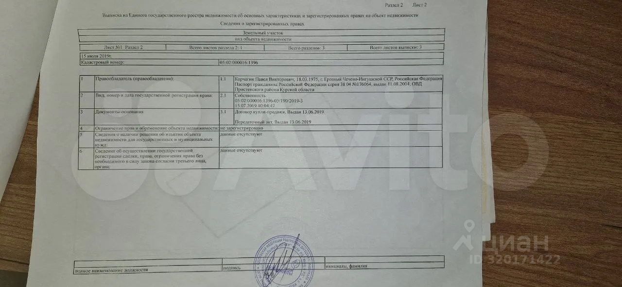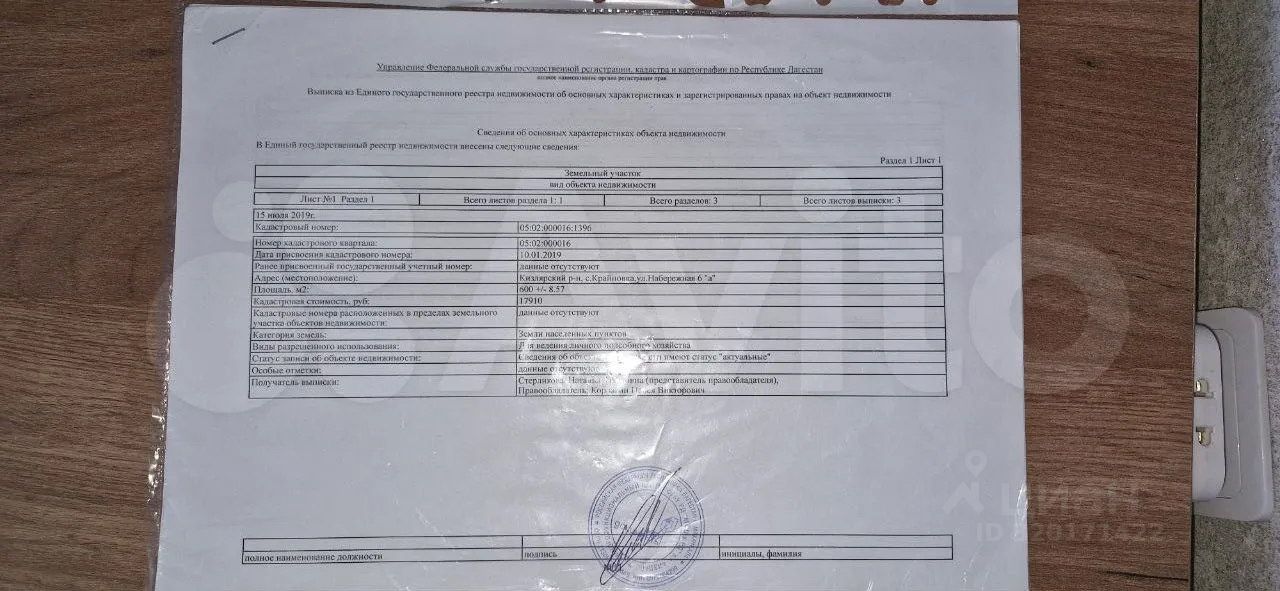 Кадастровый номер участка 05:02:000016:*** указал продавец