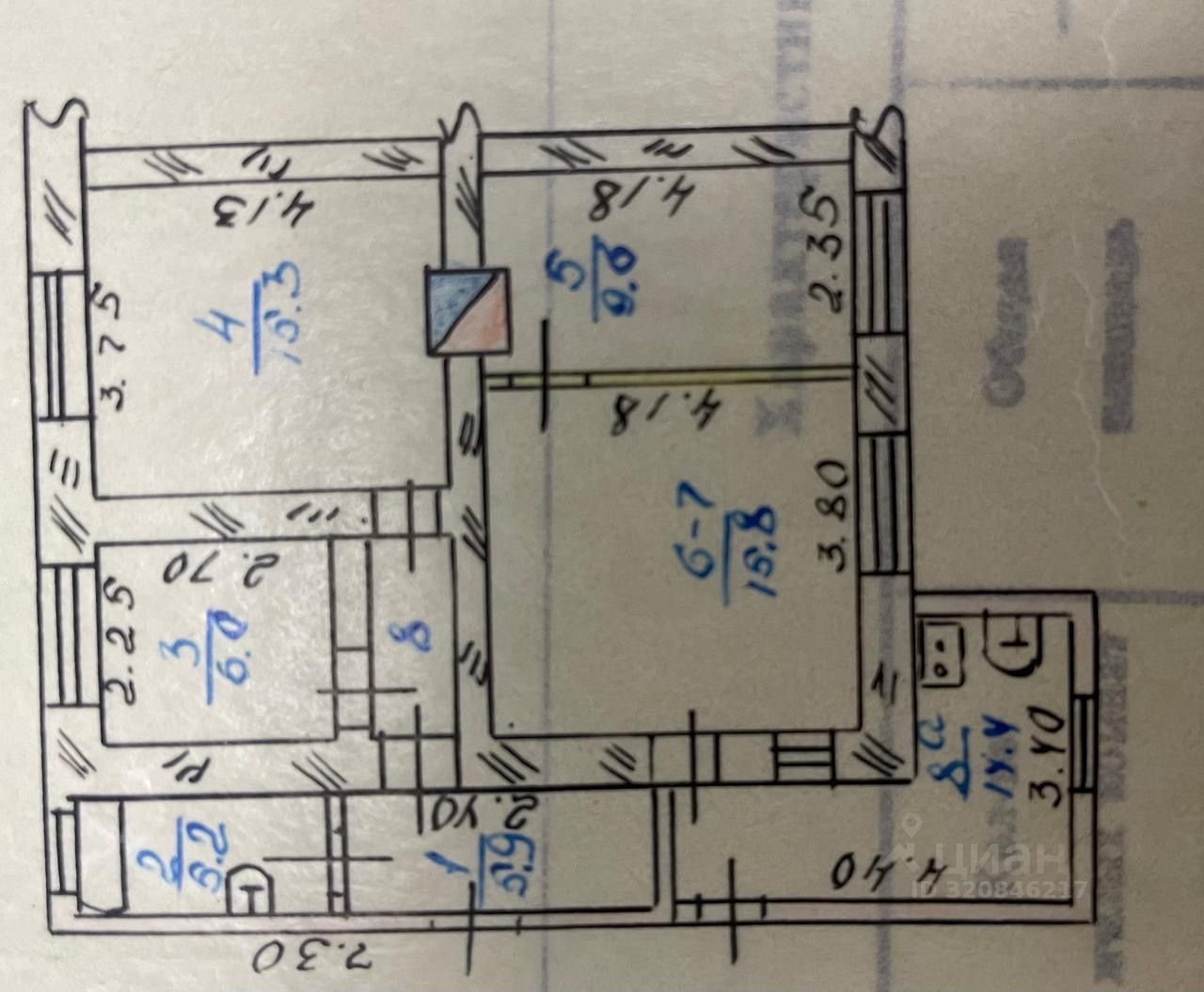 —общая площадь 76.5 м2;