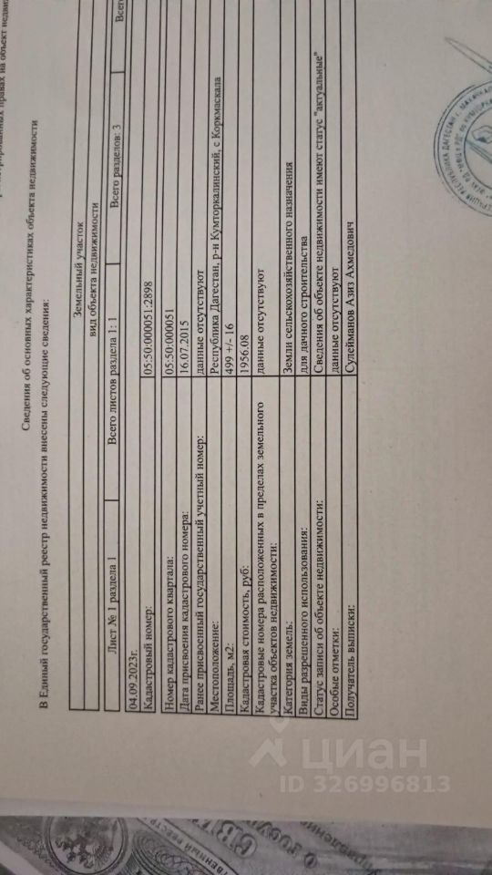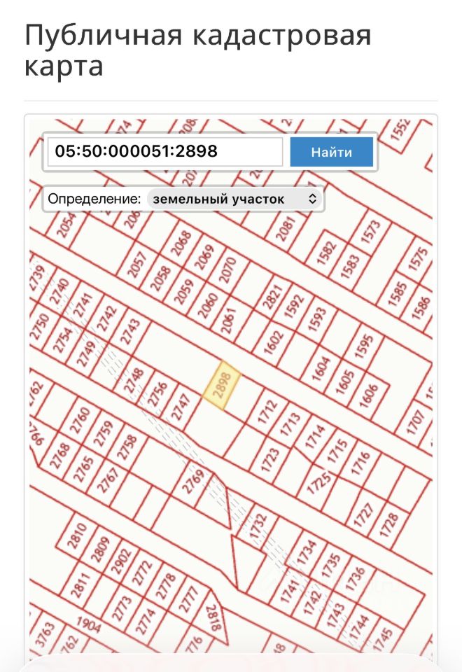 КАДАСТРОВЫЙ НОМЕР: 05:50:000051:2898