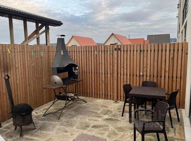 Просторная территория с мангальной зоной, верандой, местами для отдыха.
