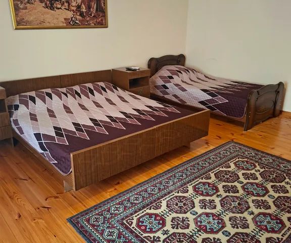Для отдыха в 70 метрах от каспийского моря. Пляж песчаный, неглубокий. Поблизости находятся кафе, рестораны, продуктовые магазины, столовые. Во дворе бассейн с подсветкой и с подогревом. Не далёко находится горячий источник для общего доступа. Вход на каждый этаж отдельно. На этаже по 3 спальни, кухня, санузел и веранда, откуда открывается роскошным вид на море, на ней же находятся кофейный столик и качели. В доме имеется все условия и техника: телевизор, холодильник, микроволновая печь, фен, утюг, вай-фай, музыкальный центр со свето- музыкой, электрический чайник, стиральная машина, пылесос, 15-кубовый резервуар для воды и резервный бензиновый генератор для электричества. Круглосуточно горячая и холодная вода. Во дворе имеется летняя кухня, санузел, терраса для уютного отдыха на свежем воздухе, шашлычная, казан для плова, самовар на дровах, отдельная просторная парковка для вашего авто. На берегу есть возможность арендовать сапы, надувные лодки, в 10 минутах находится аквапарк. Можно организовать трансфер.