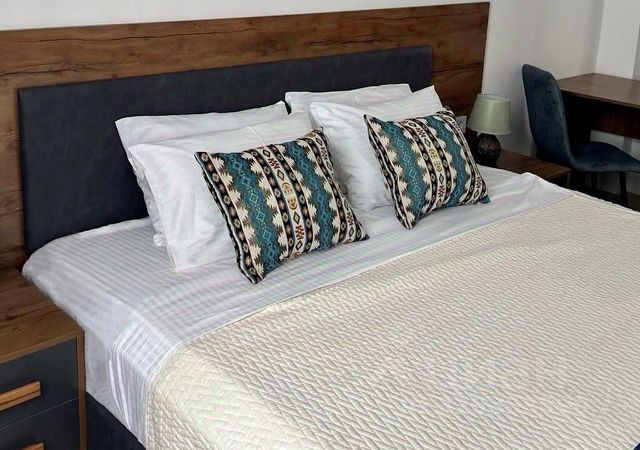 Загородный отель Кунак - идеальное место для отдыха и релаксации. Отель расположен в живописном уголке недалеко от Каспийского моря, в поселке Минас. Отель подходит для гостей которые хотят уединения с природой и в тоже время не вдалеке от столицы республики. Расстояние до аэропорта составляет - 17 км. В распоряжении гостей стандартные номера, оформленные в элегантном стиле с уютной обстановкой, а также 3 просторных двухкомнатных номера, идеально подходящих для семейного отдыха или длительного пребывания. На территории расположен уютный ресторан, где гости смогут насладиться изысканными блюдами национальной и европейской кухни, приготовленными талантливыми поварами. К услугам гостей лаундж зоны на каждом этаже коридора где гости могут почитать книги, поиграть в настольные игры или просто приятно провести время. Номер категории "Эконом" в парк-отеле "Кунак" — это компактное и светлое пространство, рассчитанное на комфортное размещение одного или двух гостей. В номере имеется одна двуспальная или две односпальные кровати (по запросу), собственный санузел с душем, кондиционер, телевизор, холодильник и электрочайник с набором для приготовления чая и кофе. Также гостям предоставляются фен, полотенца, тапочки и гигиенические принадлежности — шампунь, гель, мыло и зубной набор. Интерьер выполнен в нейтральных тонах, создавая атмосферу уюта и спокойствия, а оснащение номера обеспечивает всё необходимое для комфортного и доступного отдыха.
