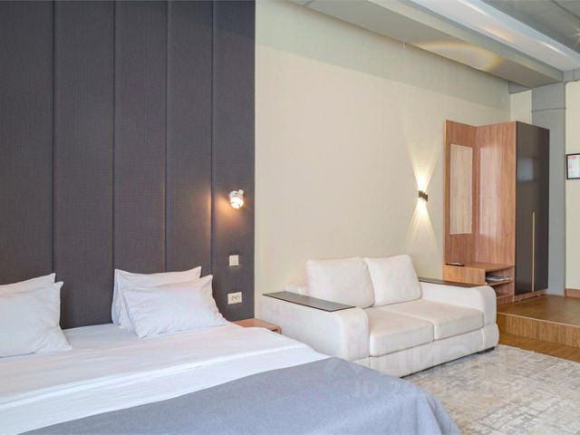 При входе в отель гостей встречает просторный холл с элегантным интерьером. Высокие потолки, изысканная мебель. Отель предлагает своим гостям различные варианты размещения, от номеров-люкс до стандартных номеров, оборудованных всем необходимым для комфортного проживания. Каждый номер выполнен в современном стиле и обставлен с использованием дорогих материалов.