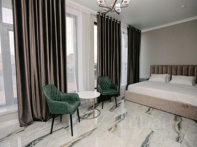 Каждый номер представляет собой студию совмещенная с кухонной зоной, которая оборудована всем необходимым кухонным инвентарем, площадь же составляет тридцать квадратных метров, в которой имеется спальная зона на от двух до шести гостей в зависимости от самого номера и санузел с душевой, так же расположен раскладной большой диван что позволит разместить у нас до 6 гостей. Еще к вашему вниманию все оконные проемы дооборудованы плотными шторами что даст вам отдохнуть в дневное время суток после дальней поездки или после отдыха на море. В общем каждый номер вмещает от четырех до шести гостей, а таких номеров напомню вам у нас пять. Так же у нас вы можете отдыхать с домашними животными, только порядок вы должны соблюдать за ними сами.