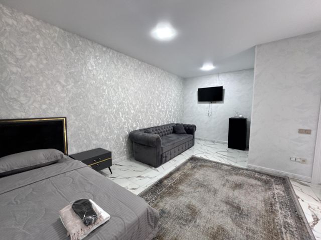 Номер площадью 23 м² подойдёт как для пары с ребёнком, так и для размещения трёх гостей. В номере — одна двуспальная кровать и раскладной диван, который используется как дополнительное спальное место. Пространство организовано удобно и функционально: телевизор с плоским экраном, кондиционер, холодильник, электрический чайник, чашки, блюдца и набор для приготовления горячих напитков (вода, чай, кофе, сахар). Собственная ванная комната оснащена душем, феном, полотенцами и базовыми туалетными принадлежностями. Бесплатный WiFi — на всей территории отеля