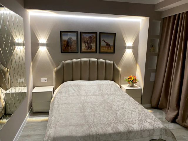 В квартире имеется всё для комфортного отдыха как с семьёй, так и для отдельных гостей. 5 спальных мест: одна 2-спальная кровать, диван раскладной на 2 спальных места и 1,5-спальный диван. Обеденный раздвижной стол (120/160), письменный стол. Также отдельная гардеробная комната. На окнах установлены шторы.