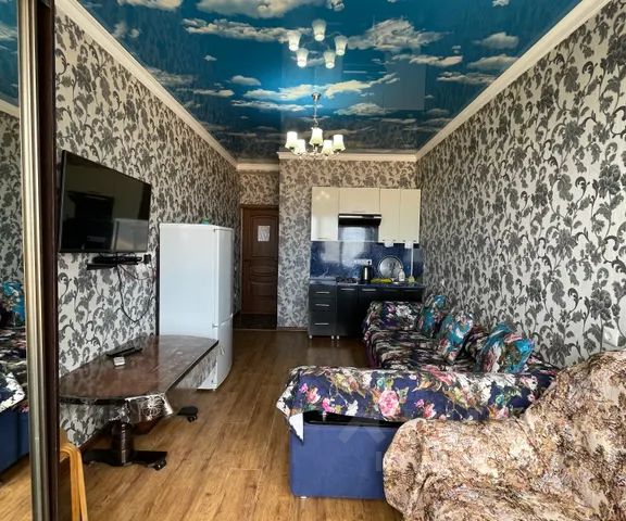 Сдается светлая студия 32 кВ метра с видом на море на берегу городского пляжа на 3 -4 человека Диван двух спальный, кресло кровать раскладной большой , матрас раскладной телевизор, вай-фай,холодильник, пылесос, фен, стиральная машинка,кухня и все кухонные принадлежности. Пешей доступности городской пляж, 30 минут до сероводородного источника бесплатно 7 минут на машине до центра города рядом кафе, ресторан, гастроном курить нельзя, с животными нельзя, дебоширить нельзя заезд 14-00,выезд 12-00 Всегда рады помочь , добро пожаловать